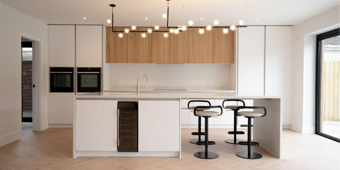 We can also assist with interiors specifications — for example, kitchen layouts, bespoke joinery, finishes, and fittings.